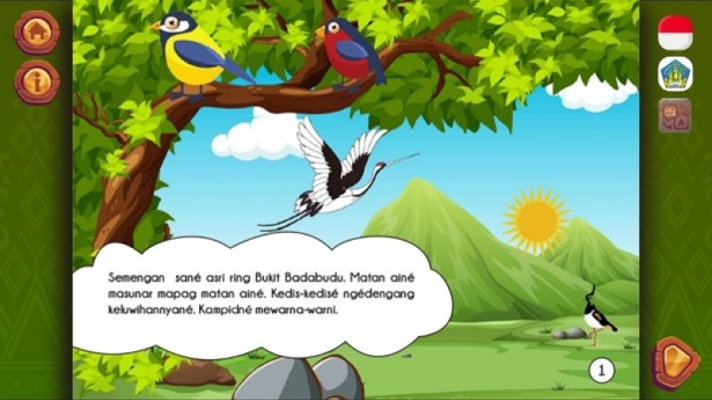 Selaras dengan fitur Maplalian, fitur Satua Bali memiliki karakteristik serta fungsi yang selaras sebagai media edukasi dan rekreasi kasusastraan Bali. Dalam fitur Satua Bali, pengguna dapat membaca sekaligus mendengarkan cerita yang diangkat berdasarkan kisah masyarakat Bali. Satua Bali ini dikemas menggunakan aksara Bali berlatar belakang ilustrasi dari suasana khas kehidupan Bali. Adanya penambahan audio merupakan inovasi dalam fitur Satua Bali sehingga pengguna dapat melatih keterampilan kebahasaan dalam hal membaca dan mendengarkan satua Bali.